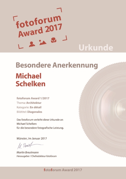 3. Platz in der Gesamtwertung beim Blende-Wettbewerb von Prophoto und erster Platz beim Thema „Architektur“